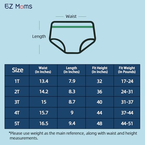 ?【Get Ready To Say Goodbye To Messy Accidents】Our Premium-Quality 5t Boys Underwear With Each Pack Containing 6 Pairs Of Training Underwear Plus A Bonus Laundry Bag. You'll Have Everything You Need To Make Potty Training A Success! Made From High-Quality Materials, These Training Pants 4t-5t Are Soft, Comfortable, And Durable Enough To Withstand Frequent Washing And Daily Use. With Their Stylish Design, Easy-To-Use Features And Perfect Fit, Potty Training Has Never Been Easier!?【Urine Absorption】Our Toddler Training Underwear Boys Are Designed To Help Your Little One Transition From Diapers To Big Boy Pants With Ease. With Their Special Absorbent Layer, These Toddler Boy Underwear Provide An Extra Layer Of Protection Against Leaks, Ensuring That Your Child Stays Clean And Dry All Day Long. And Because Potty Training Underwear Come In A Convenient Six-Pack Set. You'll Have Plenty Underwear For Toddler Boys To Get Your Child Through Even The Longest Training Sessions.?【Comfortable Fit】At EZ Moms, Our Boys Underwear Size 5 Are The Perfect Size For Your Growing Child. With Their Stretchy Waistband And Comfortable Fit, These Potty Training Pants Are Designed To Move With Your Child, Providing Maximum Comfort And Flexibility During Playtime, Nap Time, Or Bedtime. And Because Training Panties Are Machine Washable And Dryer-Safe, Toddler Training Underwear Are Easy To Clean And Maintain, Making Them The Perfect Choice For Busy Moms On The Go.?【Make Training Process Easy And Stress-Free】We Know That Potty Training Can Be A Challenging Experience For Both Parents And Children. That's Why EZ Moms Created These Toddler Underwear Boys 5t. With Our High-Quality Training Underwear For Boys, Your Child Will Feel Confident And Comfortable As They Learn To Use The Potty. Will Give Parents The Peace Of Mind They Need To Tackle This Important Milestone. And EZ Moms Toilet Training Pants Will Become A Staple In Your Child's Wardrobe.?【Machine Wash】EZ Moms Potty Training Underwear For Boys Comes With A Convenient Wash Bag, Making It Easy To Keep Your Child's Underwear Clean. Simply Toss The Dirty Underwear Into The Laundry Bag, And It Will Protect Them From Getting Tangled Or Damaged In The Wash. So Whether Your Child Is Just Starting The Potty Training Process, Or Already A Pro, Our Toddler Potty Training Underwear Boys Is The Perfect Choice For Busy Moms Who Want To Make Life A Little Easier!