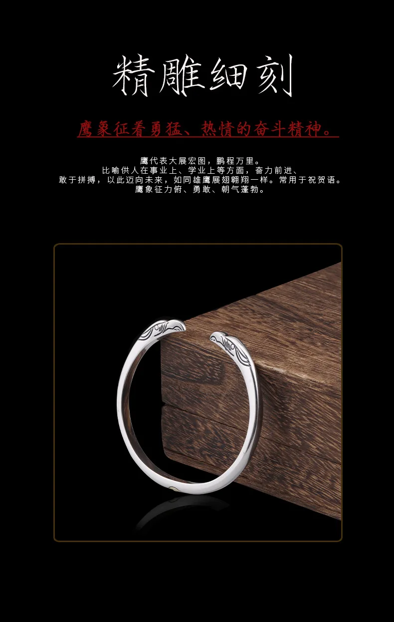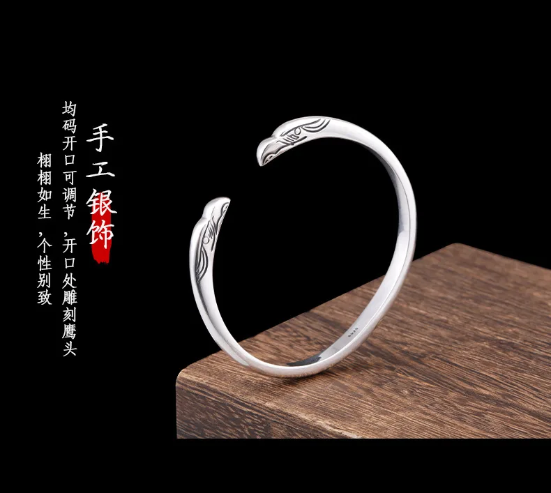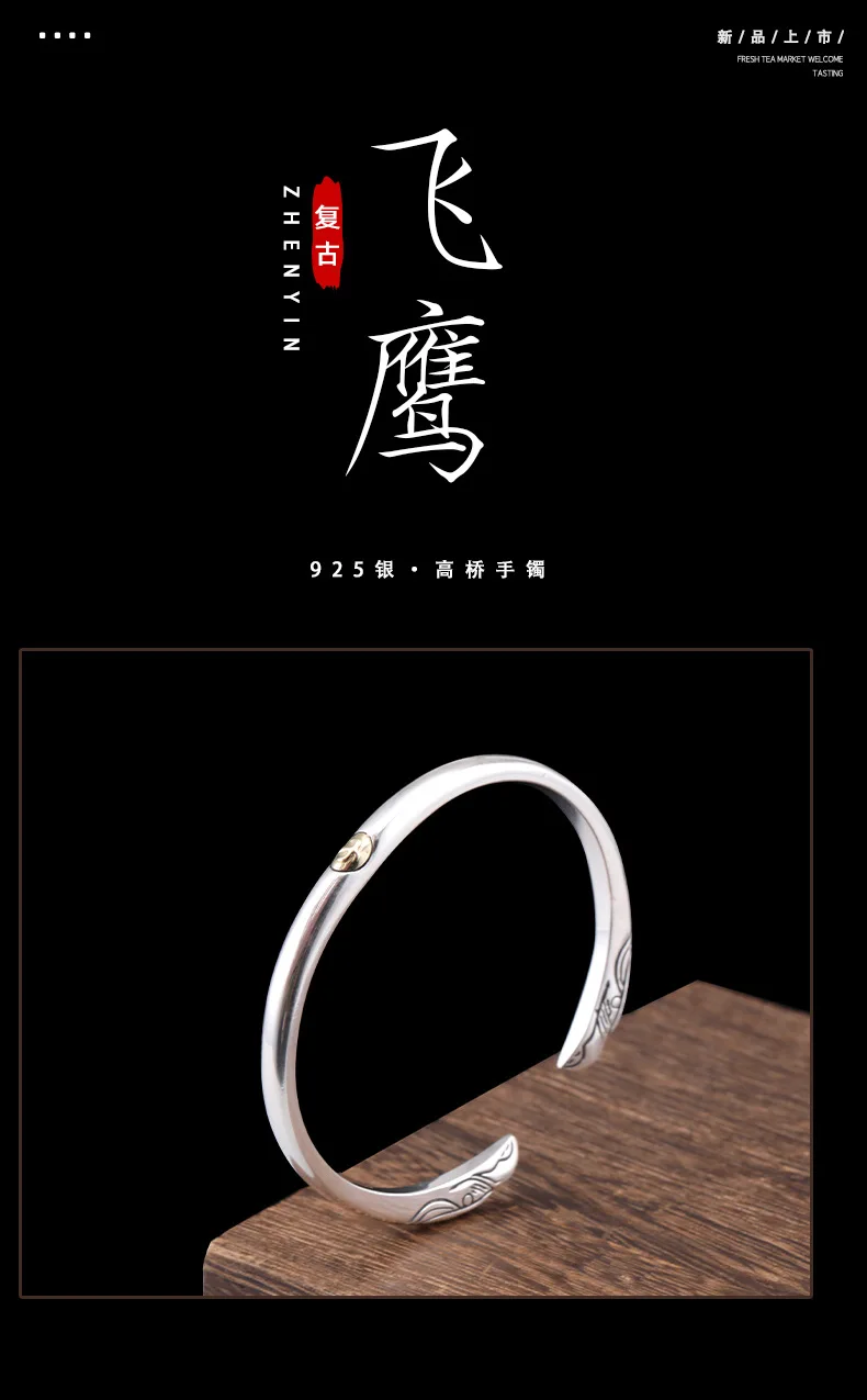 Fashion indian style grids knock the eagle open bracelet stylish s925 sterling silver trendy men's and women's bracelets