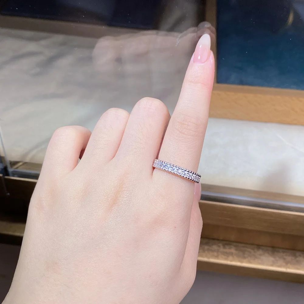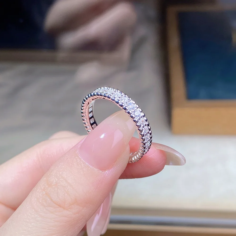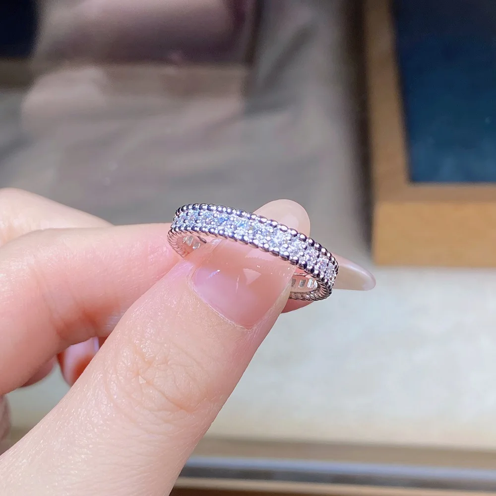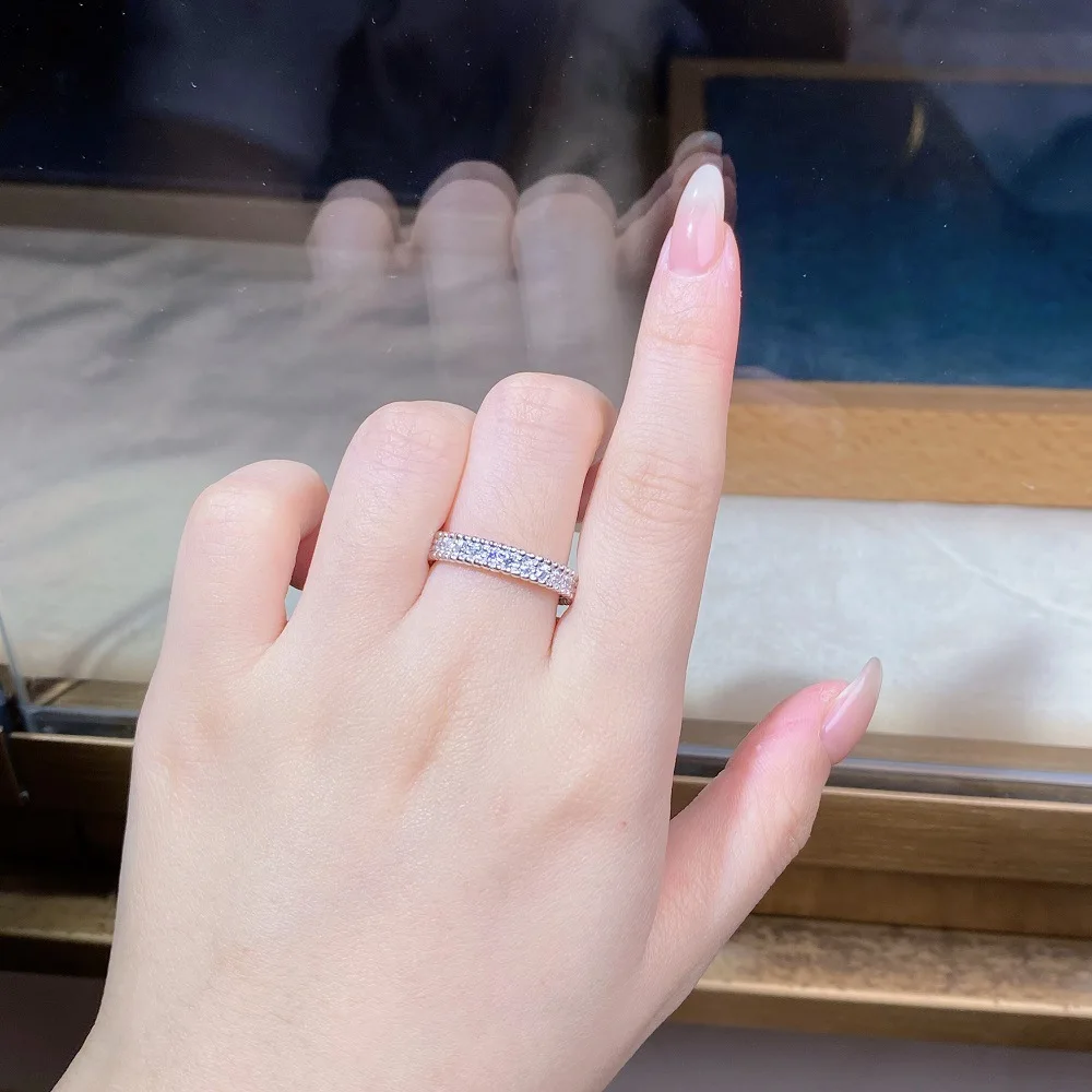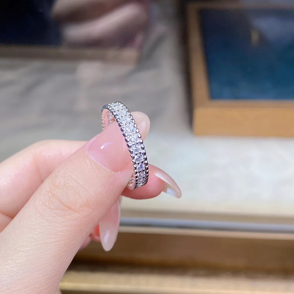 Fashionable 18K Real Platinum PT950 bead ring for women full diamond moissanite ring ins style high-end jewelry