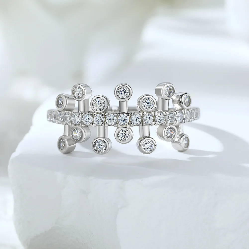 Fashionable high-end ring earring necklace S925 pure silver plated 18K gold PT950 platinum three piece set, niche design sense