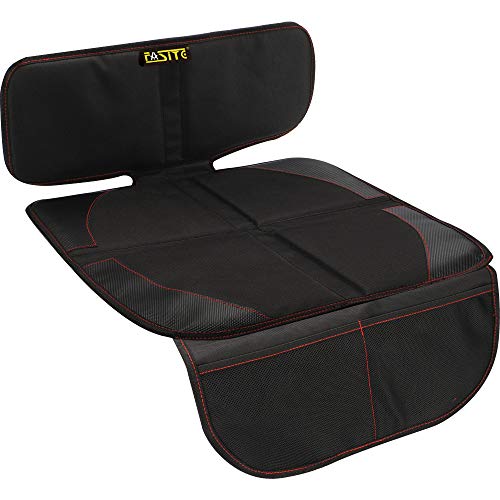 ? COMFORTABLE IN-CAR EXPERIENCE FOR YOUR CHILD: Our car seat protectors ensure your child's safety while driving and provide a comfortable ride. The simple appearance makes the interior environment more comfortable. The materials are durable and can be used for a long time.? SAFETY & CONVENIENCE: We’ve designed this child seat cover with convenience and safety in mind. Its odor-free and eco-friendly material is 100% safe for your child and pet and are quick and easy to install. The non-slip fabric on the back prevents your child from slipping during driving. It comes with handy pocket that provide convenient storage for snacks, toys and accessories and keeps them within reach.? WATERPROOF & EASY TO CLEAN : FASITE auto seat cover mat is made of waterproof oxford fabric and thick foam pad, can effectively prevent stains, dust and dirt from damaging the car's internal environment. Just wipe off the dirt with a damp cloth or just throw them into the washing machine. It is also the ideal cushion for pets.? STABILIZATION & ADAPTABILITY: Our car seat cushion is designed to work with seat belt and LATCH installations to help provide the best safety possible for your child. Suitable for all infant carriers, car seats, and boosters, easily fit most minivans, SUVs and sedan seats. Strong grip technology and non-slip fabric on the back keep your child's stability during driving and do not slip.? PROTECT YOUR CAR CUSHION: Our car cushion protector can protect your car cushion from being scratched or left behind by baby seats, keeping the seat smooth and tidy.