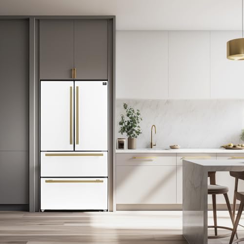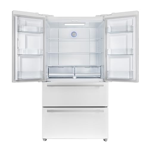 Forno 36" Espresso Moena French Door Stainless Steel Refrigerator - 19.2 Cu.ft Kitchen Fridge with LED Display and Ice Maker - Frost-free Swing Double Door Fridge with Inverter Compressor, White