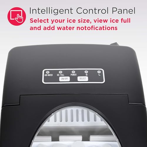 MODERN DESIGN: Ice Maker with a large transparent window so you can always see your ice being made and the levelCOMPACT & EASY: Frigidaire's countertop portable ice maker offers a wide range of uses with a compact dimension of 13 x 11 x 12.5 inches. Our countertop ice maker is portable and compact, making it simple to transport and useEFFICIENCY: Each 5-6 minute cycle produces 9 ice cubes, with a total capacity of 26lbs in 24 hours. When unused ice melts, the machines recycle the water to produce a fresh batch of ice. At any time, you may enjoy fresh iceFUNCTIONALITY: When the basket is full, our ice maker indicators will remind you to take out the ice cubes, and when the ice maker is low on water, it will alert you to add moreImportant: This ice maker is designed to produce ice, not store it. The unit does not keep ice frozen once it's made. To prevent melting, transfer the ice to your freezer promptly after it is produced