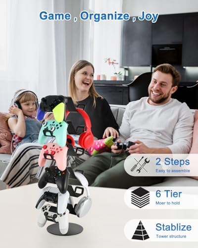 Gamer Gift,6-Tier Controller Headphone Stand Desktop,Ideal Gift for Game Lover - Universal Organizer for Controllers and Gaming Headsets,Unique Present