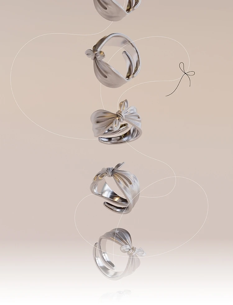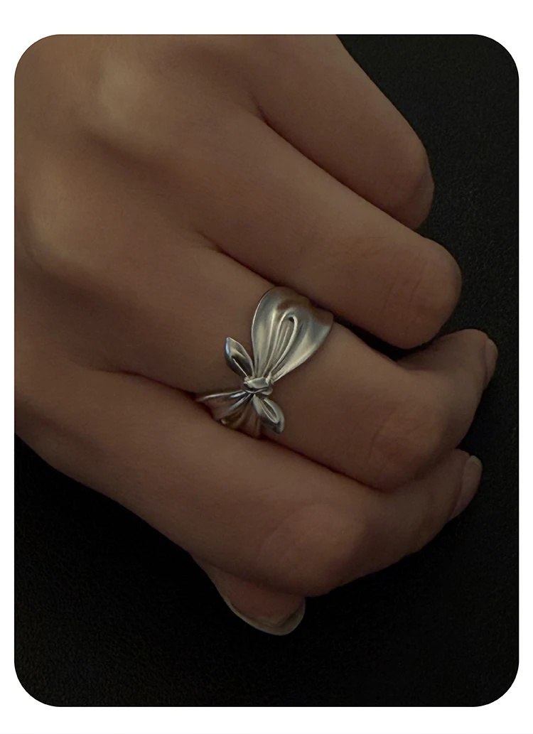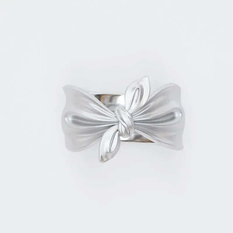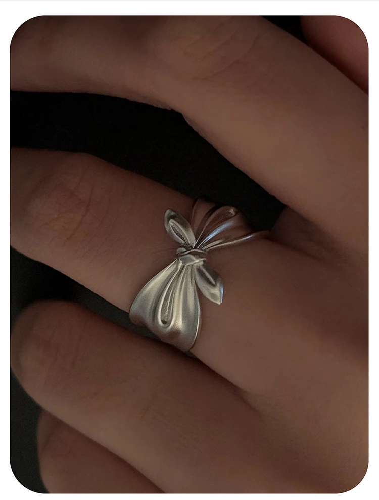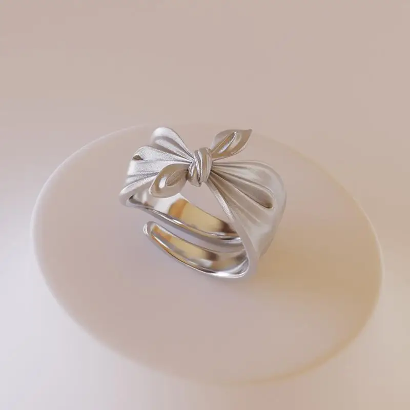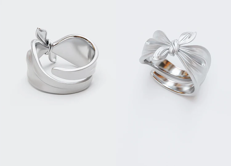 GEEZENCA 925 Sterling Silver 3D Bow Open Rings For Women Original Design Unique Elegant Ribbon Ring Luxury Jewelry New Gift