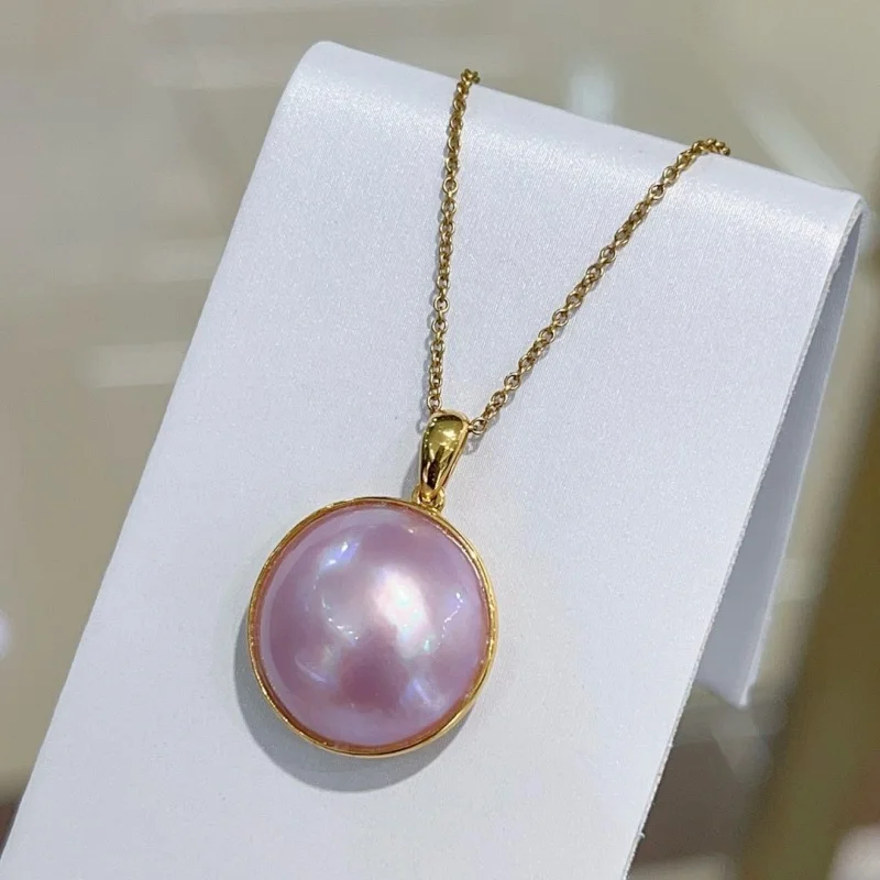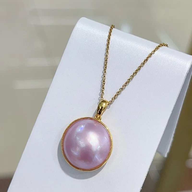 Genuine 18K Gold Mabe Sea Pearl Necklace Pure AU750 Natural Pearl Pendant for Women Simple Fashionable Fine Jewelry Gift