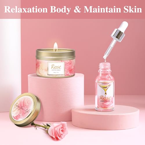 Gifts for Women, Happy Birthday Gifts for Women, Christmas Bath and Body Gifts for Woman with Unique Rose Self Care Gift, Home Spa Gift Basket for Mom, Girlfriend, Sister, Female Friends, Coworker