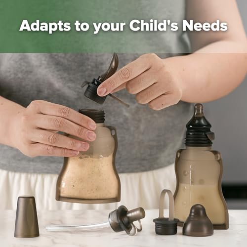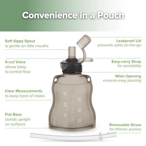 ???????? ????? ??? ???????? ???? ????:These durable, 100% food-grade reusable baby food pouches are perfect for homemade baby food, purées, and more. Saves money and reduces plastic waste. These haakaa reusable pouches are one of the best refillable pouches for baby food.?????????? ????-???????:Each of these reusable pouches for toddlers and babies includes a variable flow opening for safe, self-paced feeding. Soft silicone spout is gentle on mouths, easing the transition to solids.????????? ??? & ????????? ?????:The one-piece stopper + lid fits snugly into the Haakaa silicone pouch, keeping contents safe and secure. The straw is ideal for thinner liquids.???? ?? ???? ??? ?????:Stands upright with a wide neck, so simply pour in your homemade goodness! Cleaning is a breeze due to the pouch’s smooth, single-piece silicone construction.????????? ??? ??? ????????, ?????? & ??????:Compatible with Haakaa’s range of Milk Storage Bag & Pouch attachments, so these reusable baby food pouches easily adapt to your child’s changing needs.