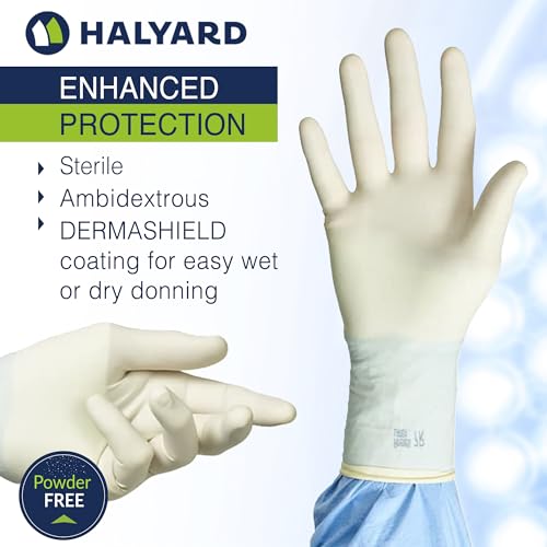 HALYARD Surgical Gloves are here!Comfortable fit with excellent tactile sensitivity in a single or double-gloving environmentThe DERMASHIELD� Technology facilitates fast and easy damp or dry hand donning, whether it is the first don or during intraoperative changesSuitable for use as an outer glove when double glovingStandard surgical glove thickness