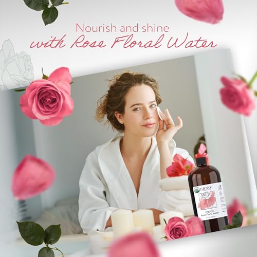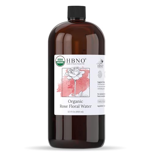 HBNO Organic Rosewater - 32 oz (950ml) Value Size - Ideal for Face Mists, Room Sprays, Fragrances, Candles, Makeup Fixers, Face wash, Lotions, and Skin Care Products.