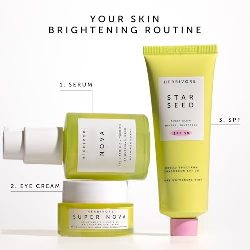 A brightening facial serum that combines the clinical strength of 15% THD vitamin C with super root turmeric to visibly improve the look of dark spots and evens skin tone while reducing the signs of aging and being gentle on skinWhile most Vitamin C skincare serums are water-soluble, our is powered by THD, a stable & efficacious oil-soluble derivative of Vitamin C, allowing it to visibly improve the look of dark spots and even skin tone for luminous resultsThis treatment gives skin an immediate boost of radiance and significantly brightens skin in just seven days; Best yet, the powerful formula is gentle on sensitive skin, so everyone can enjoy its incredible benefitsHow to use: Apply 1-2 pumps onto cleansed skin, before moisturizing; For additional skin-toning benefits use 2-3 drops of your favorite Herbivore facial oil as the final step before applying an SPFBelieve in the power of plants; At Herbivore, we create plant-based, clinically-effective formulas that are safe for you and the environment; Vegan, cruelty-free, sustainably packaged