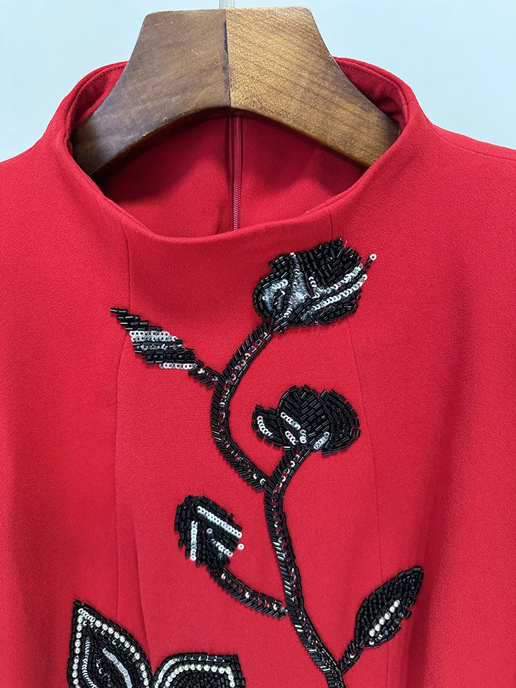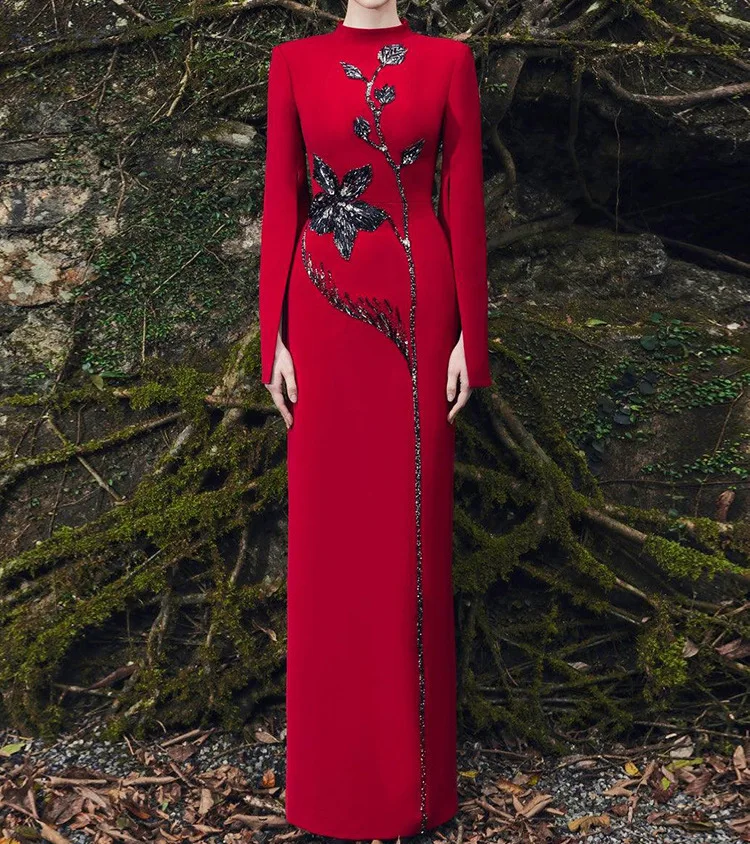 HIGH STREET Newest Fashion 2025 Designer Party Vestido Women's Flowers Beaded Diamonds Beaded Slit Sleeve Long Maxi Dress