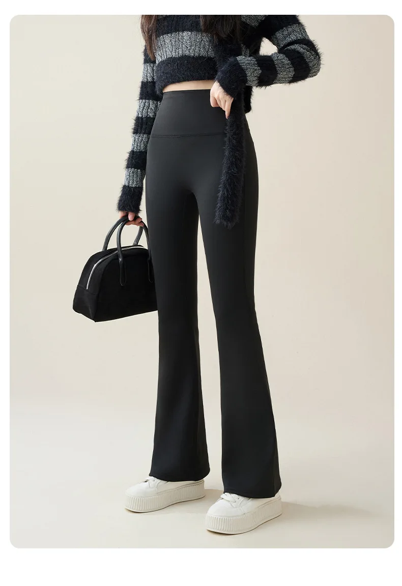 High Waist Flare Leggings Women Winter Fleece Lined Tummy Control Butt Lift Yoga Pants Stretchy Casual Bootcut Palazzo Trousers