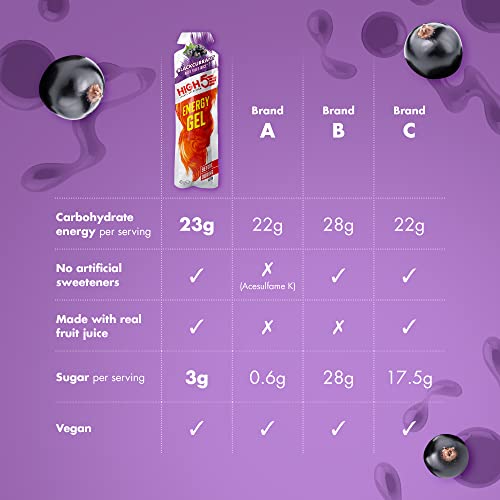 HIGH5 Energy Gels - Quick Release Sports Gels to Power Muscles for Top Performance - Natural Fruit Juice & Caffeine-Free - On The Go Energy Boost for Running, Cycling and More (Blackcurrant, 20 x 40g)