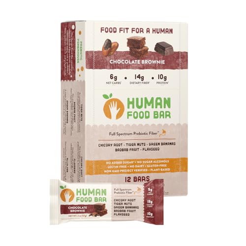 FULL SPECTRUM PREBIOTIC FIBER: The secret to Human Food Bar is a powerful prebiotic fiber blend, including Resistant Starch. Found in plants like green bananas and tubers, Human Food Bar is a convenient and delicious way to get this missing nutrient in your diet.CURB CRAVINGS NATURALLY: Beneath decadent flavors you know and love are science-backed ingredients carefully selected for being rich in prebiotic fiber and resistant starch. They increase the production of fatty acids in your gut, which stimulates GLP-1, the “hunger-quieting hormone”.