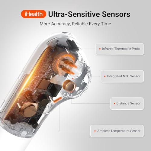 Non-Contact Technology For Safe & Hygienic Use: With a built-in infrared temperature sensor, the iHealth PT3 thermometer can read a person’s body temperature within 1.18 inches from the center of the forehead without physically touching the person.High Accuracy Via Tri-Point Sensory: An ultra-sensitive infrared sensor collects more than 100 data points per second while distance and environmental sensors work together to account for other variables, ensuring maximum accuracy every time the temperature is taken.Simple, Fast, Clear, And Quiet: With an intuitive single-button control design, the thermometer reads and shows the temperature in just one second on its easy-to-read, extra-large LED display, even in total darkness. When the temperature is read, the device gives a gentle vibration notification to the holding hand—no beeps or buzzes.Suitable For Wide Usage Scenarios & All Age Groups: This iHealth thermometer (model PT3) is designed for all ages, ranging from babies and toddlers to the elderly. An ideal choice for at-home use and for hospitals, hotels, schools, and other public or private establishments.In The Box: 1× iHealth PT3 thermometer, 2× AAA batteries, 1× Instruction manual, 1× Quick User Guide, our worry-free 12-month warranty, and friendly California-based customer service.