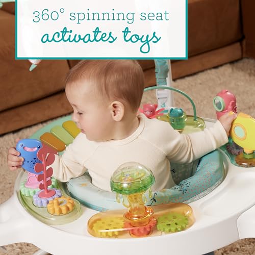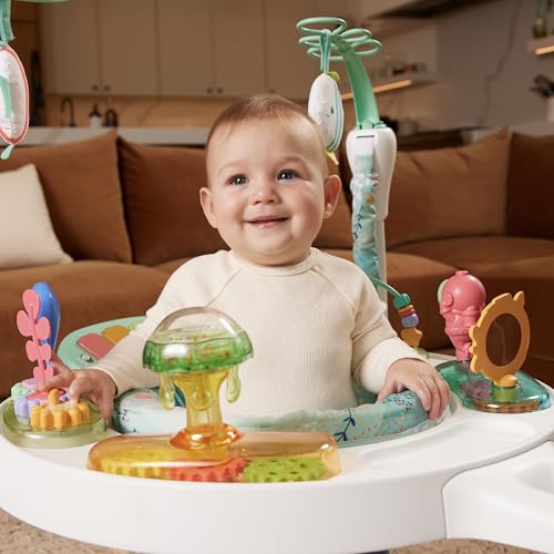 OCEAN-THEMED BABY JUMPER: Includes colorful sea creatures, textures, and sensory toys for early learning and discovery360° ROTATING SEAT DESIGN: Lets baby spin freely and access fun play activities, boosting coordination and engagement21 INTERACTIVE ACTIVITIES: Features lights, music, and motion-based play that support cognitive and motor developmentADJUSTABLE HEIGHT ACTIVITY CENTER: Multiple height settings grow with your baby from 4 months and upREMOVABLE LIGHT-UP PIANO: Baby can play while jumping or take the piano out for floor play and musical fun