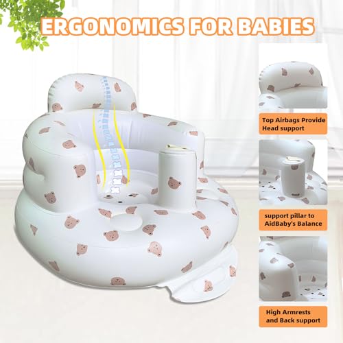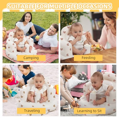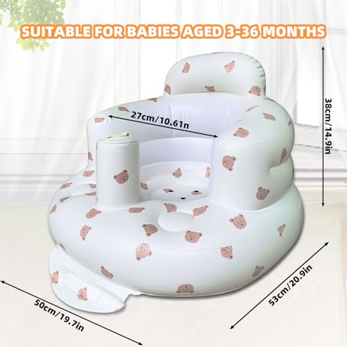 Inflatable Baby Seat for Babies 3-36 Months, Built in Air Pump Baby Chair Sit Me up Floor Seat for Baby, Bumbo Seat for Learning to Sit, Feeding, Camping (Bear)