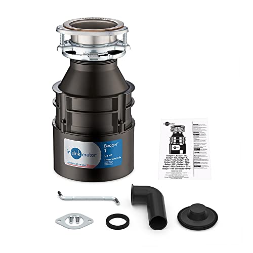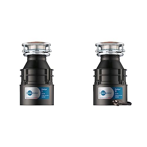 InSinkErator Garbage Disposal, Badger 1, Standard Series, 1/3 HP Continuous Feed, Black & Garbage Disposal with Power Cord, Badger 5, Standard Series, 1/2 HP Continuous Feed, Black