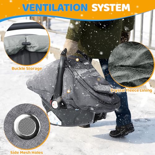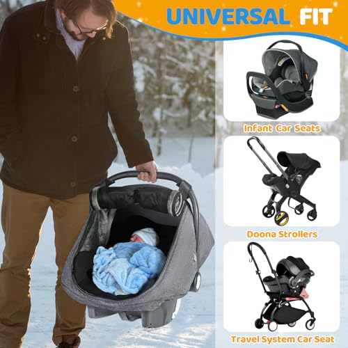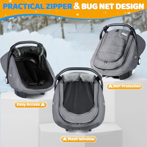 IvyWind Winter Baby Car Seat Cover, Universal Carseat Cover for Babies with Breathable Mesh Window, Infant Car Seat Covers to Keep Warm, Carseat Waterproof Canopy for Newborn Boy Girl, Dark Gray