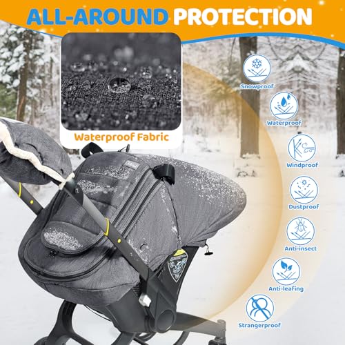 QUALITY MATERIAL: IvyWind Baby Car Seat Cover is made from crystal fleece lining and memory fabric, filled with resin cotton, which not only provides ultimate warmth and comfort for babies on cold winter, but also protects them from rain, wind and dustUNIVERSAL DESIGN: IvyWind Infant Car Seat Cover is secured at the bottom by elasticated straps and can be fitted to most car seats. Carseat Cover also reinforced at the bottom with a nylon buckle to prevent baby from kicking offDOUBLE OPENING DESIGN: IvyWind Winter Carseat Cover for Baby is designed with a mesh window, which makes it more breathable and keeps out snow or falling leaves. It comes with a zip fastening front cover, which insulates from wind, rain, sand and lightPRACTICAL ZIP DESIGN: IvyWind Carseat Canopy has a flexible two-way zip for easy opening, allowing you to carry baby in and out to complete care tasks. The front flap has a convenient buckle design that allows it to be rolled up and secured with a buckleSAFETY DESIGN: IvyWind Baby Carseat Cover has a mesh vent on each side to provide fresh air to baby even when fully closed. Its top hangs from the carseat handle by a durable Hook & Loop, giving baby more room to move comfortably