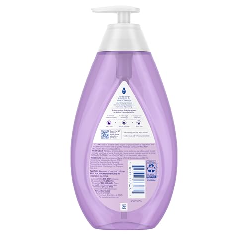 27.1-fluid ounces of Johnson's Bedtime Baby Bath with a special calming aromatic blend that helps to soothe your baby while leaving their skin feeling touchably soft and smoothThis nighttime baby bath is enhanced with soothing & calming NaturalCalm aromas and cleanses baby's skin. It also features a formula that is hypoallergenic, free of harsh fragrances, parabens, phthalates and dyes. Johnson's does not test on animalsMade with No More Tears formula, this tear-free liquid baby bath is gentle on your baby's eyesUse this calming baby bath in the evening as part of the Johnson's clinically proven bedtime routine of Warm Bath + Gentle Massage + Quiet Time to help your baby fall asleep faster and stay asleep longerPediatrician and dermatologist-tested, this baby bath creates a gentle, foaming lather and is specially designed for babies for when they are ready to start sleeping longer