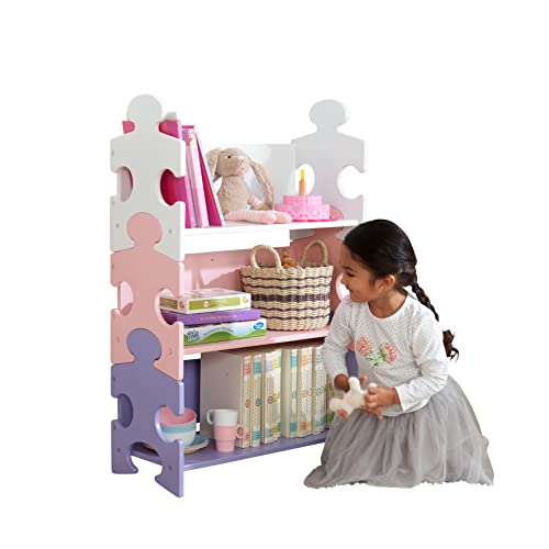 KidKraft Wooden Puzzle Piece Bookcase with Three Shelves - Pastel, Gift for Ages 3+