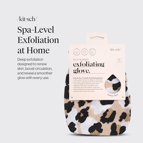 Kitsch Exfoliating Glove – Korean Exfoliating Mitt & Deep Exfoliating Body Scrubber for Shower, Bath , Body Exfoliator, Dead Skin Remover , Skin Care for Smooth, Renewed Skin - 1pc, Leopard