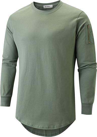 High quality T-shirts. Dress comfortably. Use the latest fashion colors. It suits you. The sleeves are a popular zipper pocket design. The pockets are made of different materials. For contrast effect.