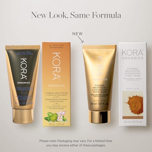 Radiant Skin Ritual: KORA Organics Turmeric Brightening & Exfoliating Mask in a travel-size offers an invigorating face mask skin care experience; formulated to revitalize and smooth while purifying pores, it enhances your skin's natural radianceAward Winning Glow: an Allure Best of Beauty 2022 Winner, this exfoliating mask and face scrub deeply cleanses and polishes, refining and refreshing your complexion; expect a glowing result with this standout product in face masks skincarePowerful Botanical Blend: With Rosehip Seeds and Mineral Powder to deep clean, Turmeric to guard against environmental aging, and Certified Organic Peppermint Oil for an invigorating experience, this facial mask is a holistic addition to your skincare routineOptimal Routine For Brightness: Apply to damp skin and gently massage; leave on for 5-15 minutes, then remove with water or a damp cloth for added exfoliation; use 2-3 times weekly for best results; some redness may occur due to improved circulation, subsiding in 15-20 minutesHealthy Skin Is Beautiful Skin: At KORA Organics, Certified Organic products are at the heart of what we blend; all our products are cruelty-free and vegan, and we never use artificial fragrances or colors
