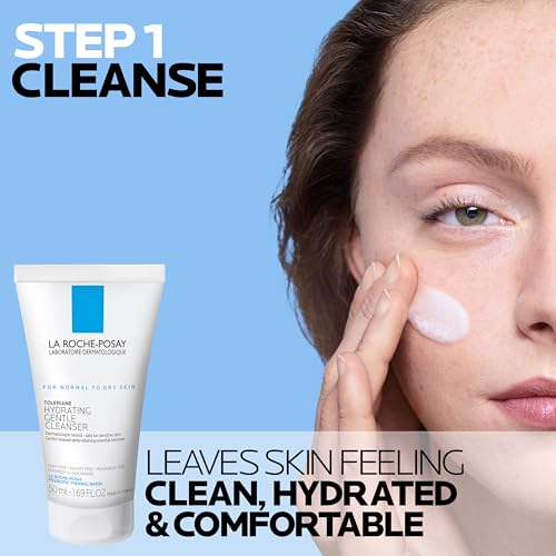 Toleriane Hydrating Gentle Cleanser: Daily gentle face cleanser for normal to dry, sensitive skin; a hydrating facial cleanser that removes dirt, makeup, and impurities while maintaining the skin’s moisture barrierToleriane Hydrating Gentle Cleanser: Formulated with niacinamide, ceramide‑3, and La Roche-Posay prebiotic thermal spring water; this cleanser supports a healthy skin barrier and complements routines that use a hyaluronic acid moisturizerToleriane Double Repair Face Moisturizer: Daily moisturizer for face delivers long‑lasting hydration; face moisturizer for sensitive skin helps restore the skin’s protective barrier for a healthier, rebalanced complexionToleriane Double Repair Face Moisturizer: Moisturizer for dry skin. Non‑comedogenic facial moisturizer for dry skin and daily moisturizer suitable for women and men; pairs well under SPF and with hyaluronic acidCicaplast Balm B5+: Soothing cream and non‑greasy skin protectant for face, lips, hands, and body; helps comfort cracked, chapped, and chafed areas and dry, rough skin irritations