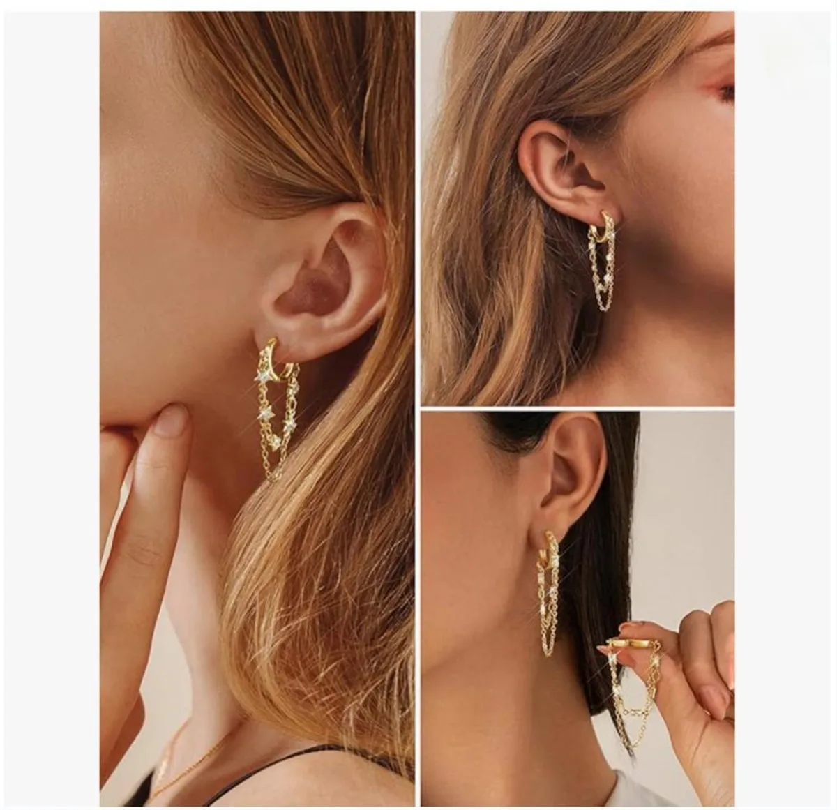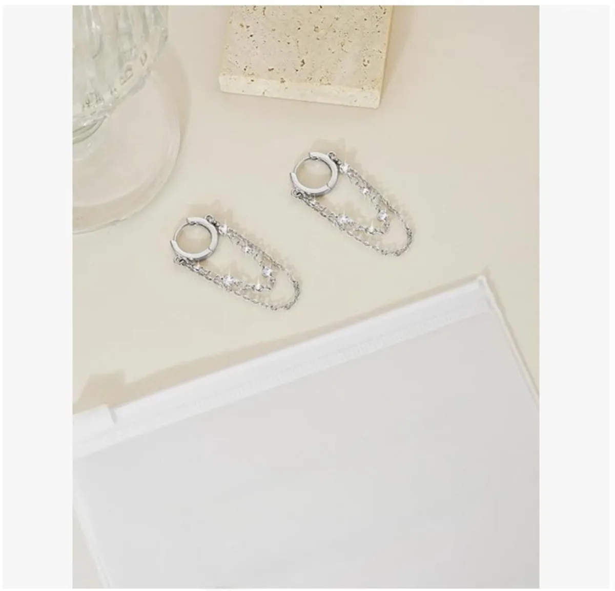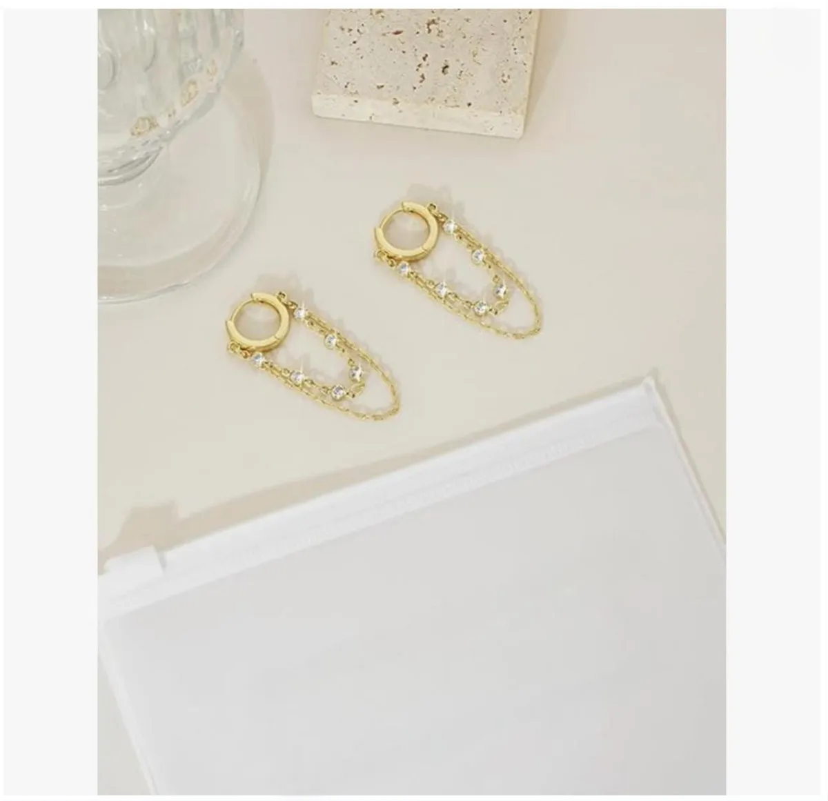 Lab grown diamond Tassel Chain Small Gold Hoop Dangle Earring For Women Huggie Earring bubble 14K Gold Fashion Jewelry Friendshi