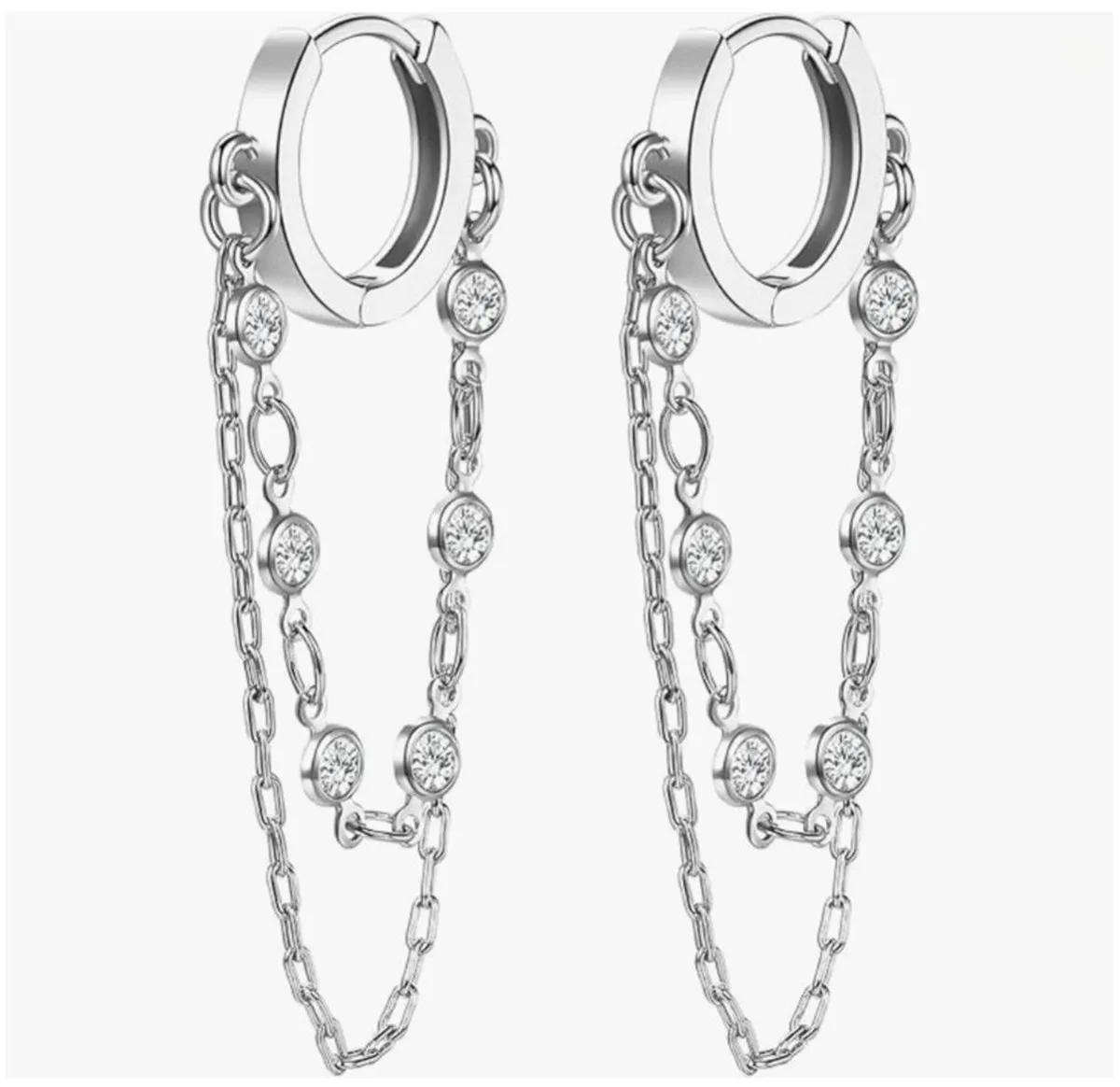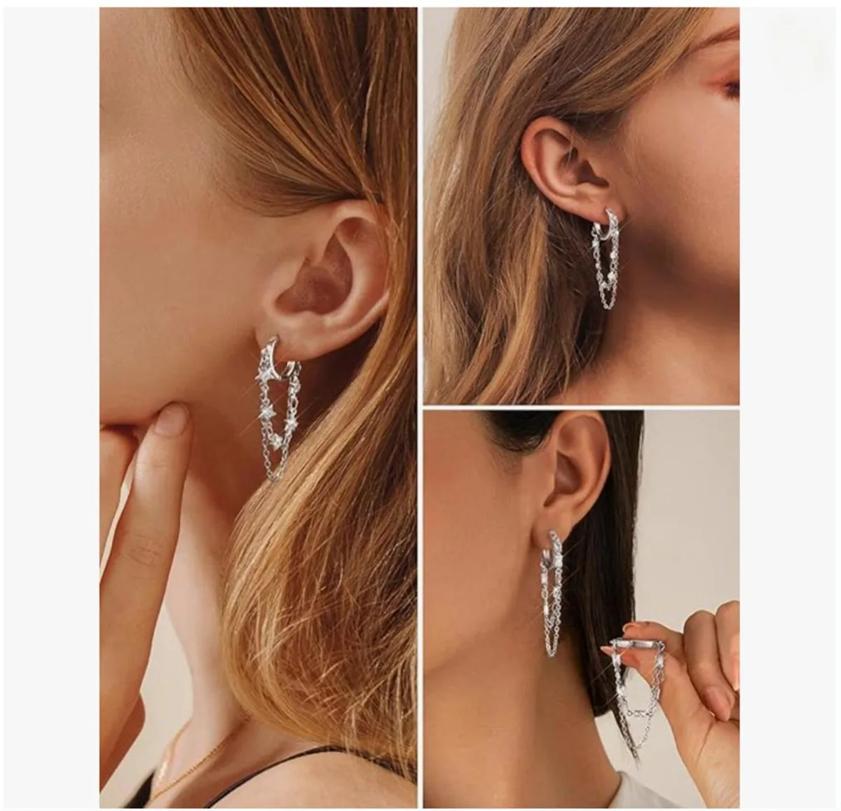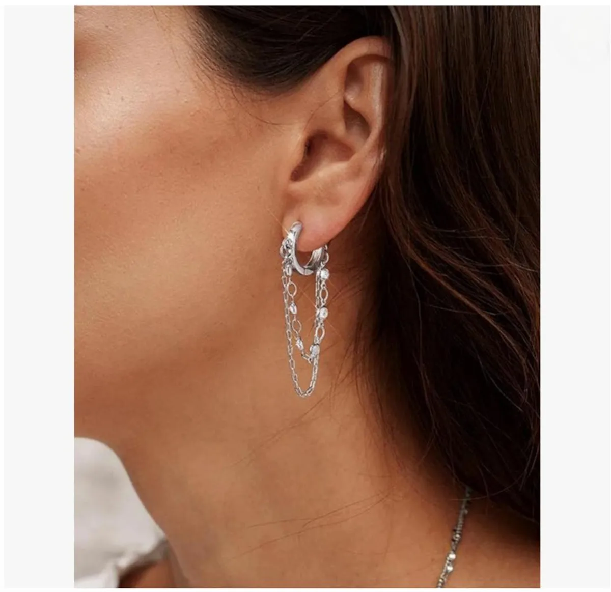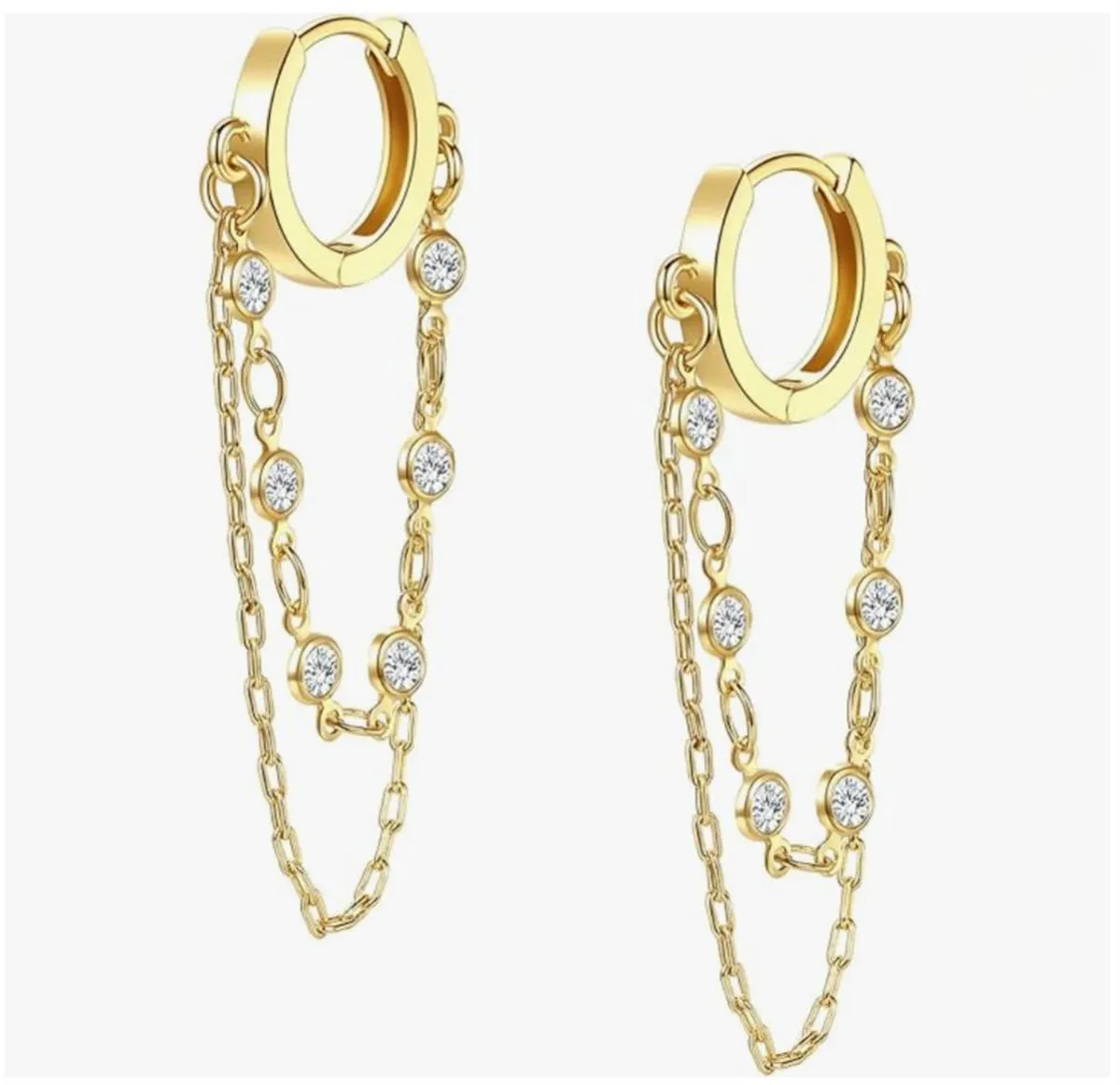Lab grown diamond Tassel Chain Small Gold Hoop Dangle Earring For Women Huggie Earring bubble 14K Gold Fashion Jewelry Friendshi