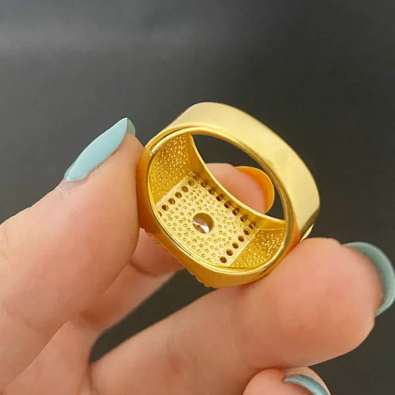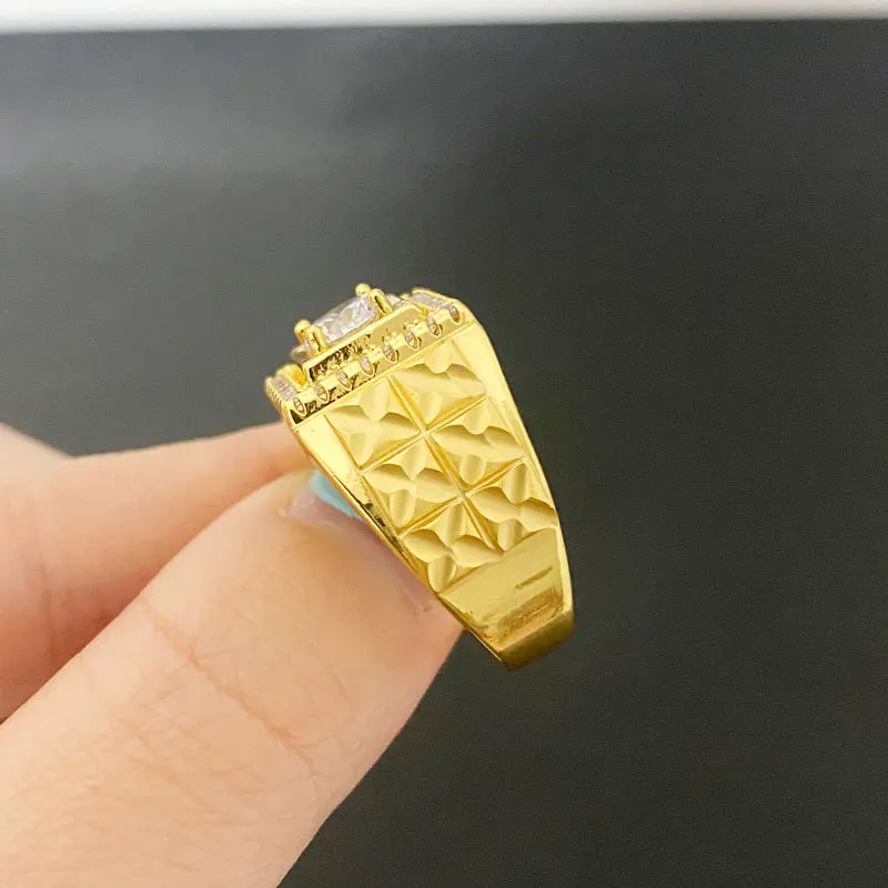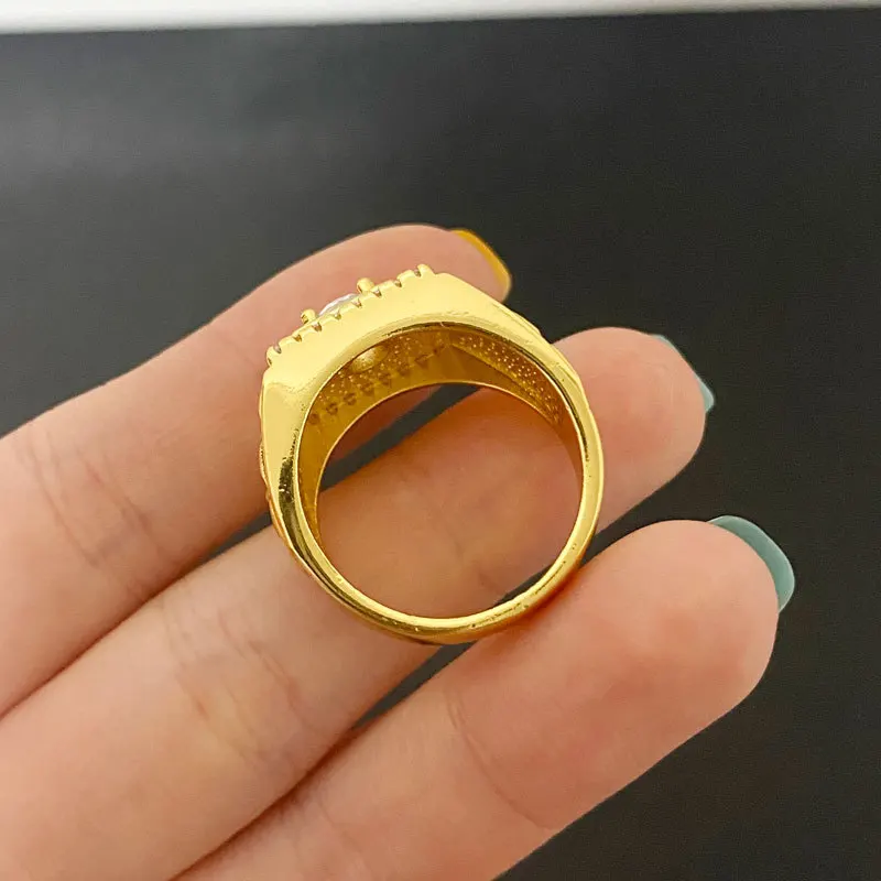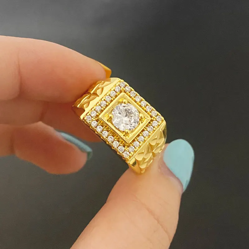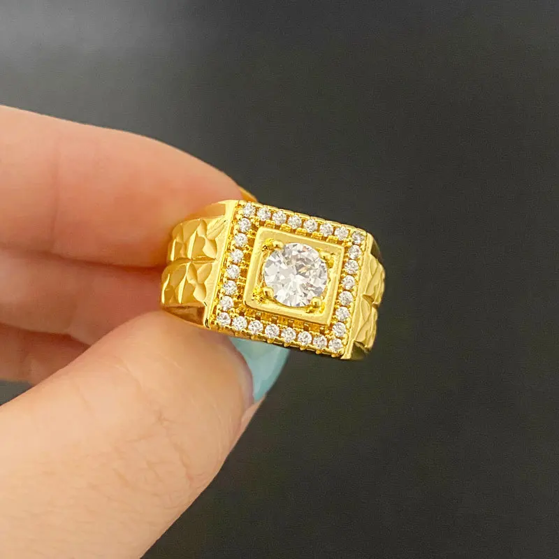 Light luxury 24K real gold jewelry inlaid with zircon rice flowers opening men and women au9999 gold ring fashion