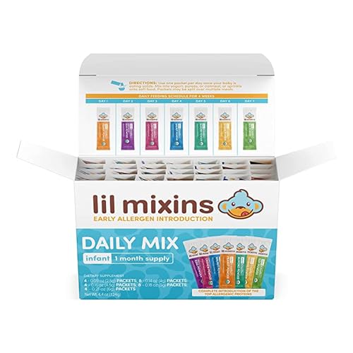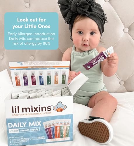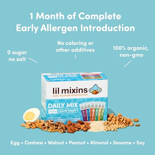 EARLY INTRODUCTION: Smart mix-ins are pure protein supplements that make it easy to add peanut, tree nut, and egg protein into a diet.EASY TO USE: Mix 1 packet per day into 4oz of cereal, yogurt, pouches, puree jars, or homemade meals. Start as early as 4 months old, use 1-2 times per week and continue until 1 year of age.SAFE & CLEAN INGREDIENTS: All of our mix-ins are non-GMO, no sweeteners, 0g sugar, and no coloring or other additives.INTRODUCE ONE ALLERGEN AT A TIME: We individually separate our mix-ins, so you can safely introduce new things one at a time. NOTE: Early introduction is NOT for those with a known allergy to a specific dietary item. Do not feed a child specific dietary items they are allergic to.PEDIATRICIAN APPROVED: Over 4,000 pediatricians recommend Lil Mixins to their patients for Early Allergen Introduction. Compliant with American Pediatric guidelines.