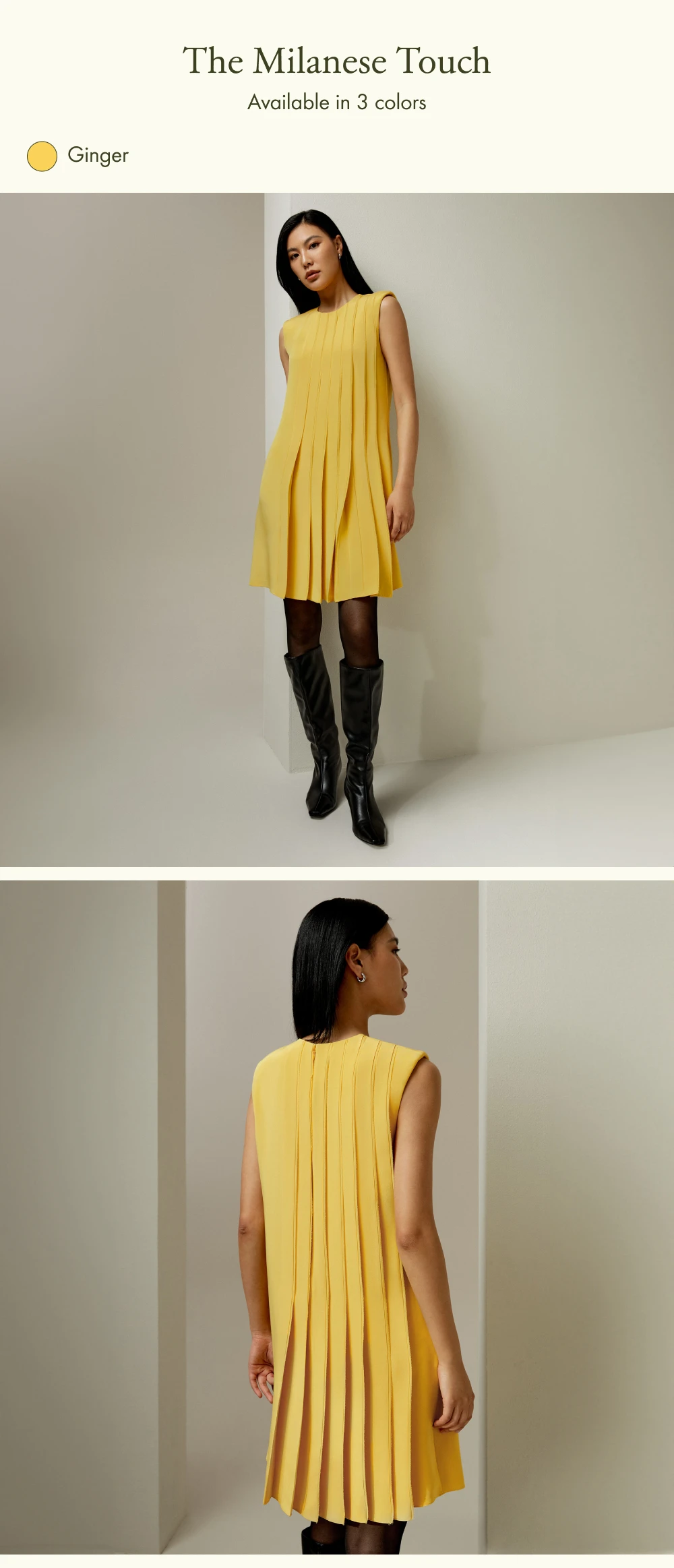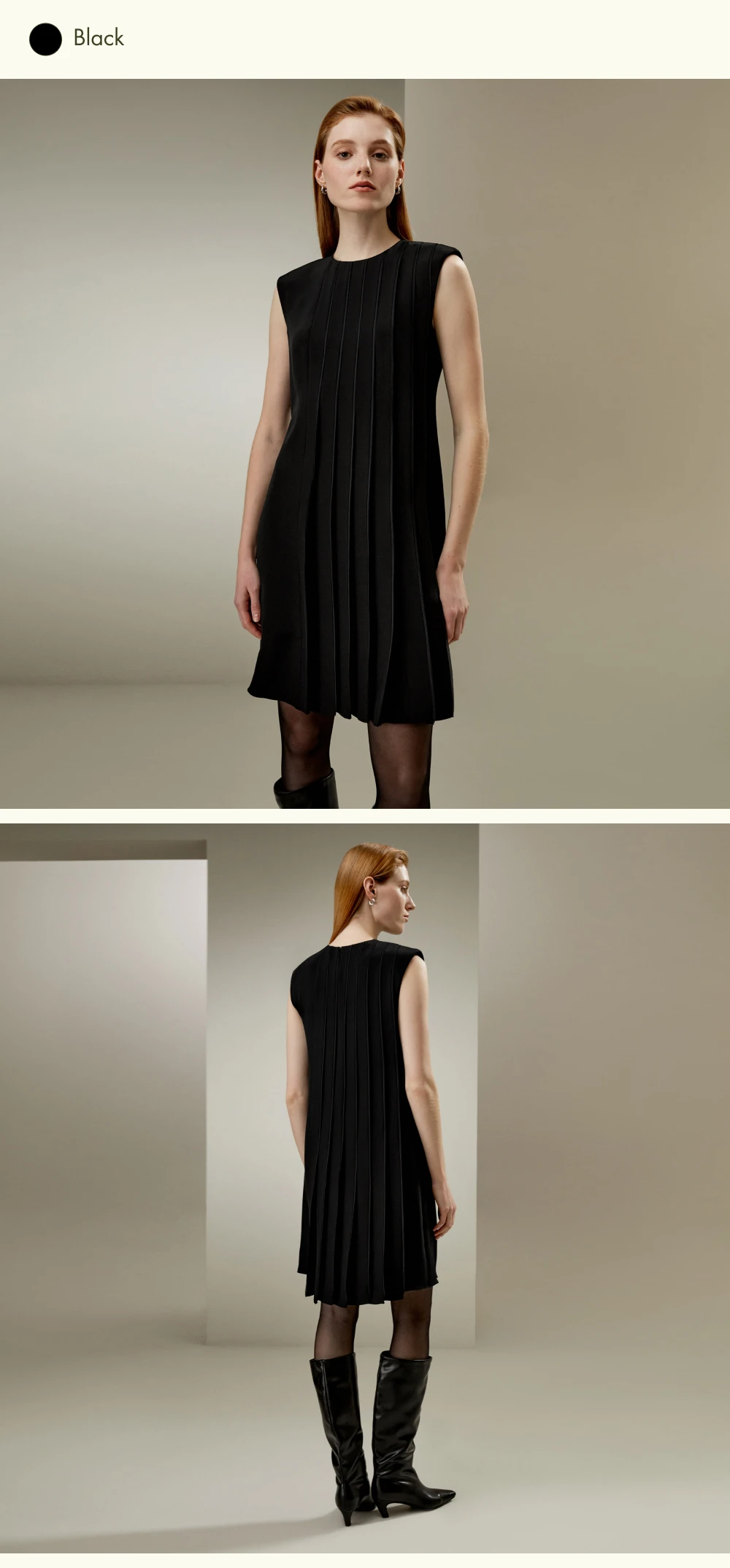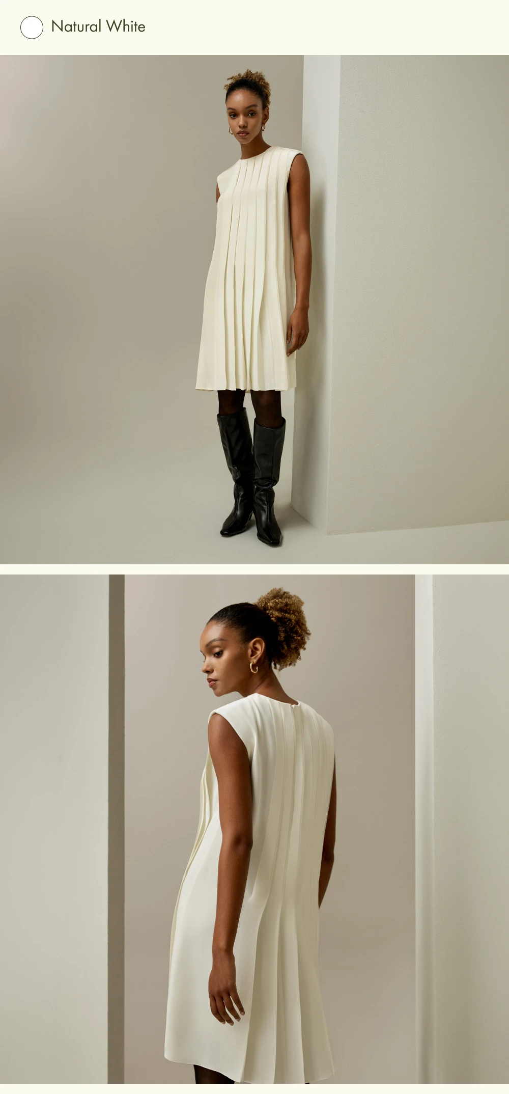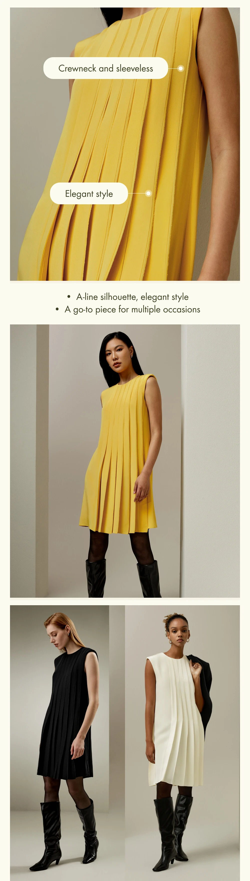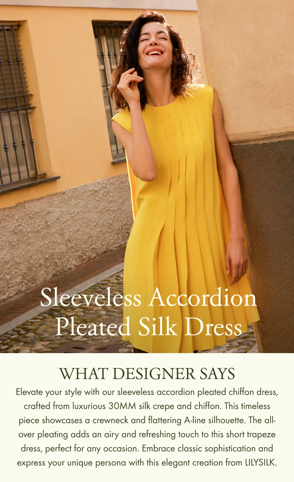 LILYSILK Women's Sleeveless Accordion Pleated Silk Dress Ladies A-line Elegant Midi Dress with Crewneck and Padded Shoulders