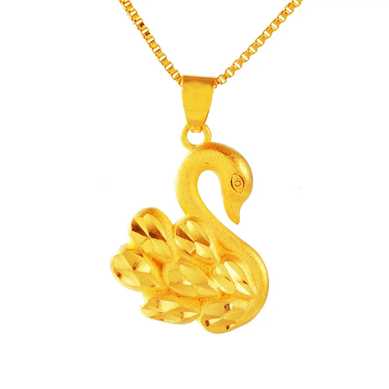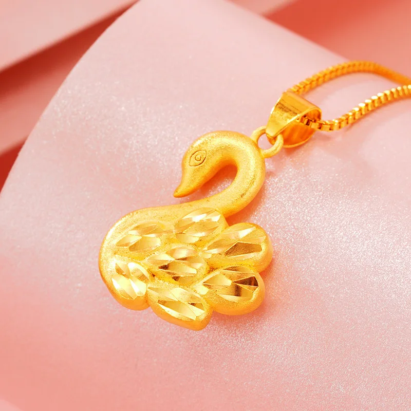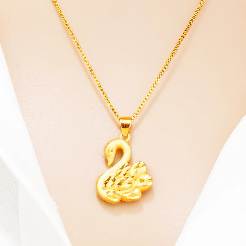 Luxury 24K 9999 Pure Gold Little Swan Women's Pendant Fashion Necklace Pendant