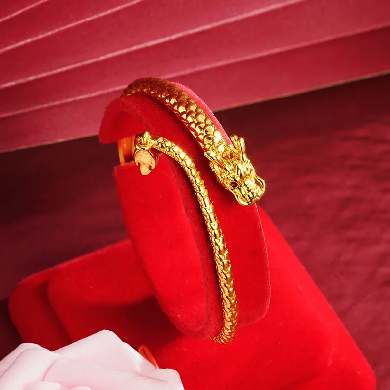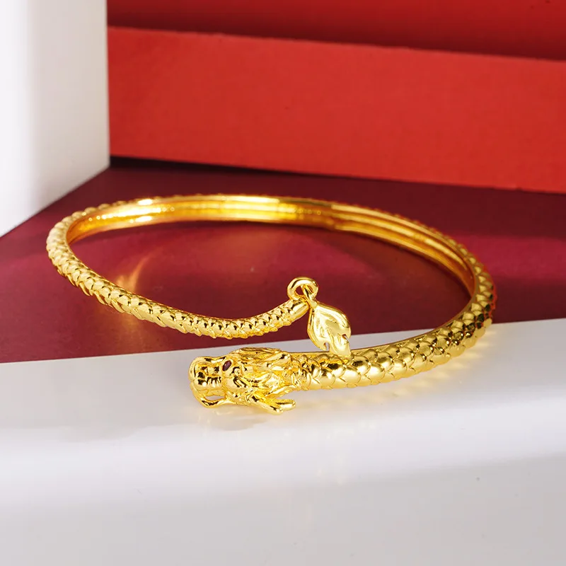 Luxury 24K 9999 Pure Gold real gold Panlong Bracelet Retro National Fashion Elegant Dragon Tail Pendant Dragon Shape Bracelet