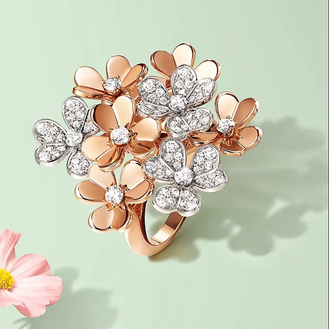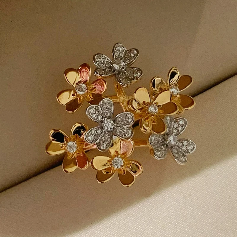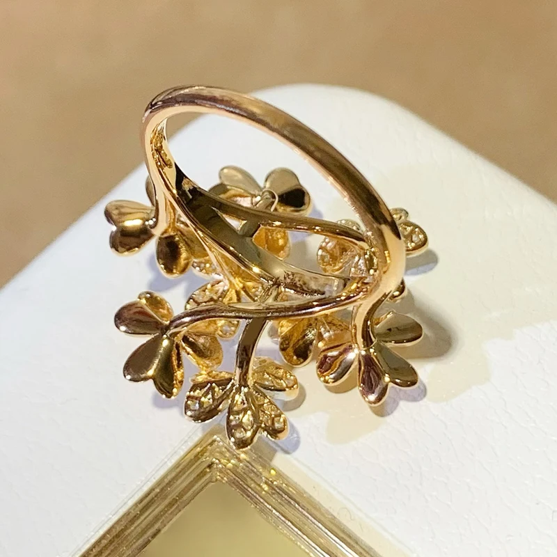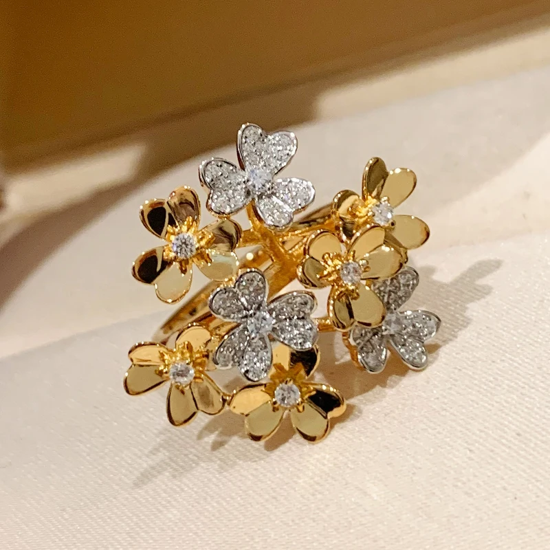 Luxury Designer Real 925 Sterling Silver Clover Flower Rings Full 5A Zircon Women Fashion Brand Party Jewelry High Quality Gift