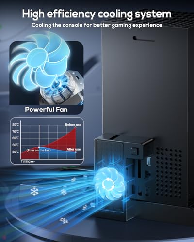 MENEEA Cooling Fan & Charging Stand for Xbox Series X Console & Controller,Vertical Cooler System Dual Charger Station Dock Accessories with 2 x 1400mAh Rechargeable Battery for Xbox Series X