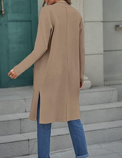Fashion design: Long sleeves, wide neck, drop pleated cardigan, elastic knit material, above knee length, casual slim, solid color, 2 side pockets, split hem. This sweater jacket is cute and heavy and protects against the cold wind, but it's not too bulky and you can move freely.