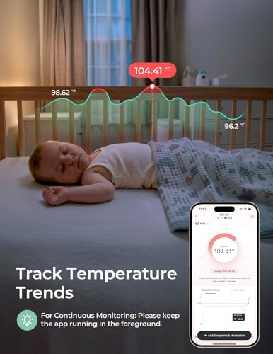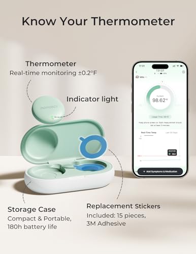 【Continuous Monitoring & Temperature Trend Tracking】 This wearable smart baby thermometer continuously tracks your baby’s temperature while the Momcozy App is active in the foreground and connected. It automatically generates easy-to-read temperature trend charts, allowing you to visualize changes over time. You can also manually record related symptoms for more complete monitoring. The clear temperature trends turn uncertainty into insight, helping parents care with greater confidence and peace of mind.【180H Ultra-Long Battery Life & Portable Readings Anytime, Anywhere】 This all-in-one kit is designed for modern parenting. The sealed storage case is compact and portable, ensuring hygiene and safety. Equipped with a 180-hour ultra-long battery life, this portable infant thermometer provides lasting, reliable monitoring whether at home or on the go. Perfect as a baby shower & registry gift, it suits new parents and meets everyday childcare needs.【Local Data Storage Security & Multi-User Management】 This smart baby thermometer deeply safeguards family privacy. All temperature data is stored locally on the device via Bluetooth connection. The Momcozy app supports multiple child profiles, allowing effortless management of the entire family's temperature data with just one device. Simply attach the patch to begin monitoring - quick and convenient. The underarm placement provides stable, accurate temperature readings.【Attention】: If you have already downloaded the Momcozy app, please update to the latest version to connect to the T31 wearable thermometer.The app is free for life.Replacement stickers are now available.