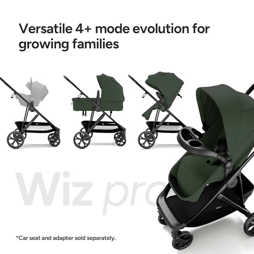 Versatile 4-Mode Evolution for Growing Families: The Wiz Pro effortlessly transitions from bassinet mode to toddler seat, adapting seamlessly as your baby grows (up to 50 lbs), featuring switchable parent/forward-facing modes with quick recline. The included snack tray keeps essentials within reach, making on-the-go feeding effortlessEnhanced Canopy & Seat Design: Featuring an expanded UPF 50+ canopy with 30% more coverage and breathable mesh panels, perfectly paired with our deepened, widened seat with seasonal seat liner to create a versatile space that adapts to your growing child, offering exceptional sun protection and adjustable comfort from infancy through the toddler yearsPremium Smooth-Ride System – Experience effortless gliding with our redesigned frame and puncture-proof all-terrain wheels, featuring advanced suspension that absorbs bumps for undisturbed naps. Conquers cobblestones and rough terrain with unparalleled stabilitySustainable Innovation: The Wiz Pro redefines eco-conscious parenting with premium recycled fabrics, OEKO-TEX certified for safety. Its durable construction features aerospace aluminum framing, while every surface that touches your baby is enveloped in ultra-soft, fabric-wrapped padding for unparalleled comfortUniversal Family Design – JPMA-certified for safety, featuring quick-secure harness with no-rethread adjustment for effortless customization. The extended under-seat basket offers ample storage, while included accessories (snack tray, bumper bar, foot cover, rain cover, cup holder) provide complete convenience. Compatible with most infant car seats when used with adapters (sold separately) for a seamless travel system