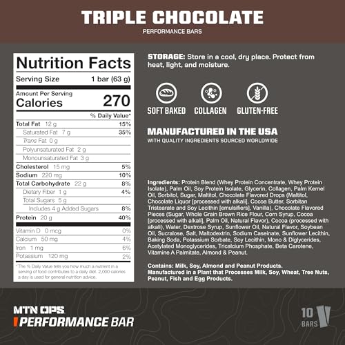 MTN OPS Triple Chocolate Mudslide Protein Bars, High Protein with Whey Isolate & Whey Concentrate and Collagen, Low Sugar, Gluten Free, 10 Count