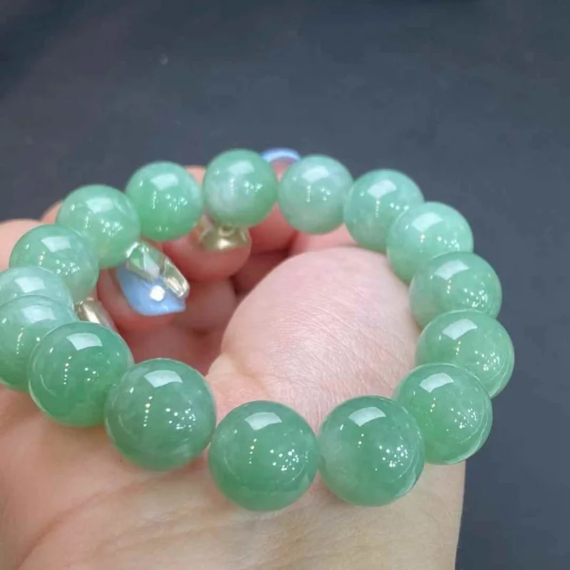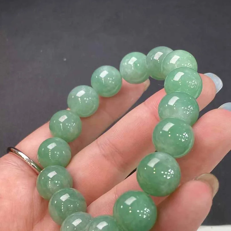 Myanmar Natural A Women Full Green Round Bead Jade Bracelet Jewelry Accessories