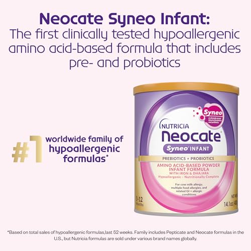 MEDICAL FOOD: Dairy free hypoallergenic formula for use under medical supervisionBLEND OF PREBIOTICS AND PROBIOTICS: Contains Syneo, a patented blend of prebiotics and probioticsWITH NUCLEOTIDES AND DHA/ARA: DHA/ARA to support brain and eye developmentNUTRITIONALLY COMPLETE FOR INFANTS 0-12 MONTHS: Provides key nutrients to support normal growth and developmentNEOCATE: The world’s number 1 amino-acid-based formula brand (based on worldwide sales volume)