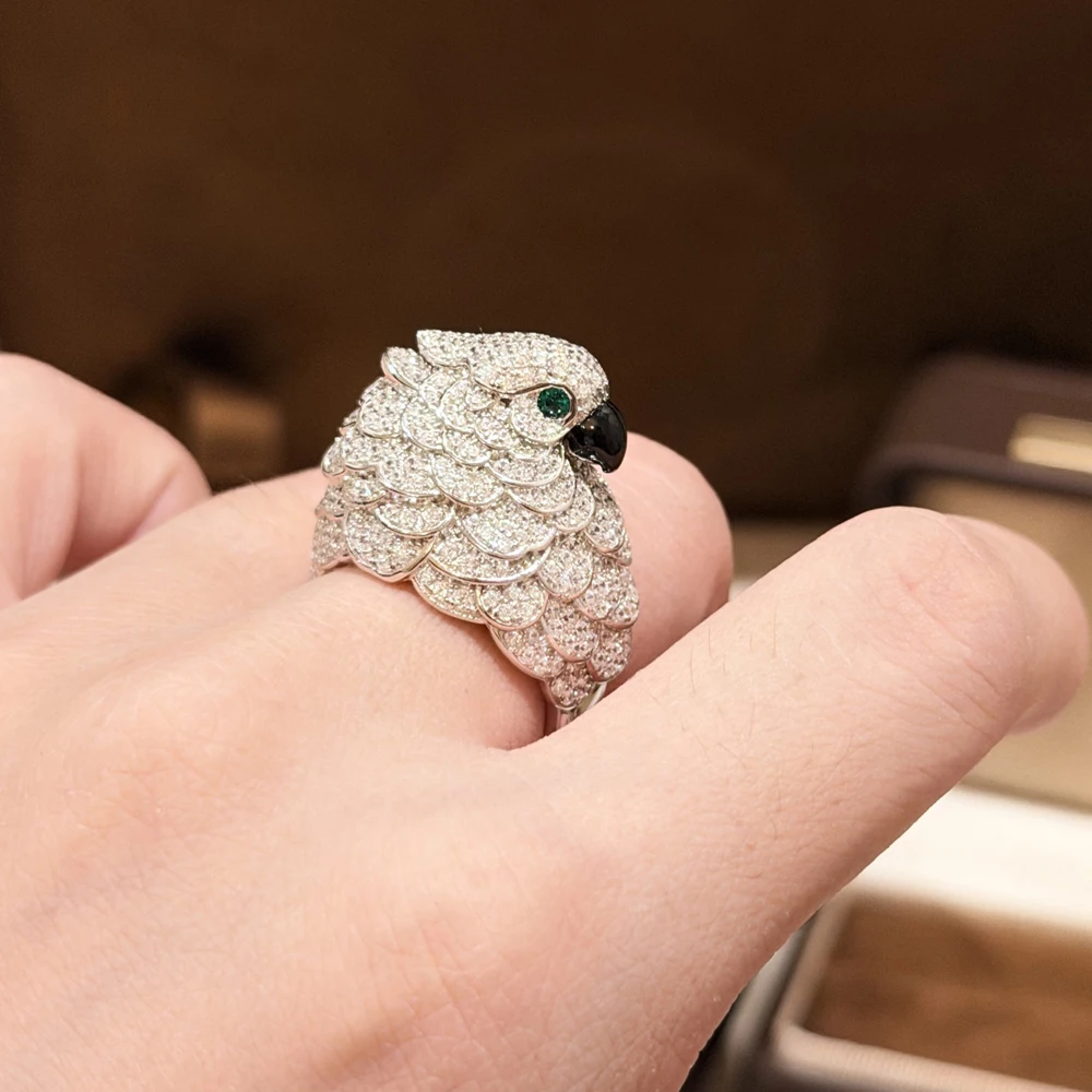 New Arrival Fashion Designer Real 925 Sterling Silver Ring Parrot Bird Women Girls High Quality Luxury Brand Party Jewelry Gift
