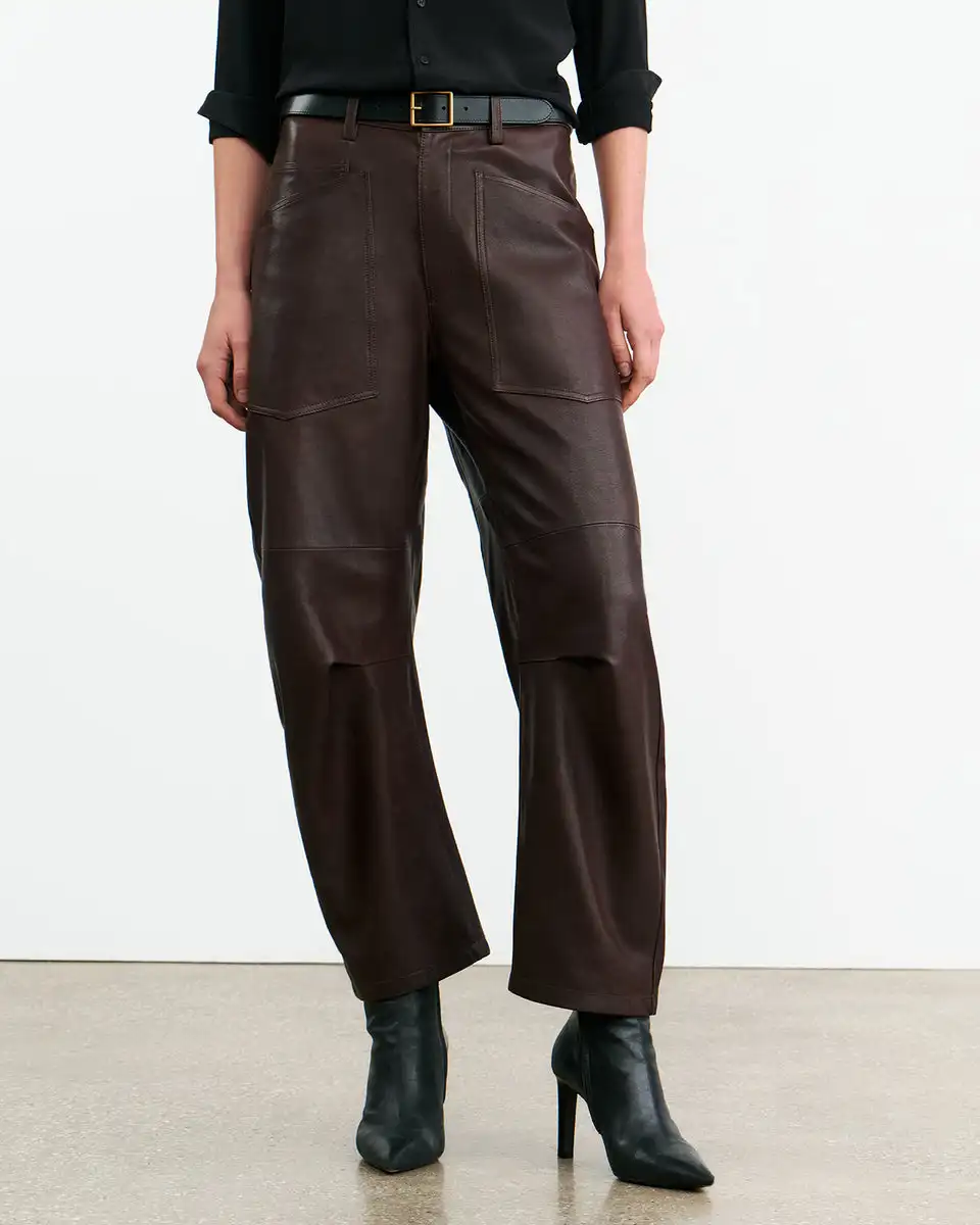 New casual women's wear fashion leather Nili Lotan trousers in black and brown