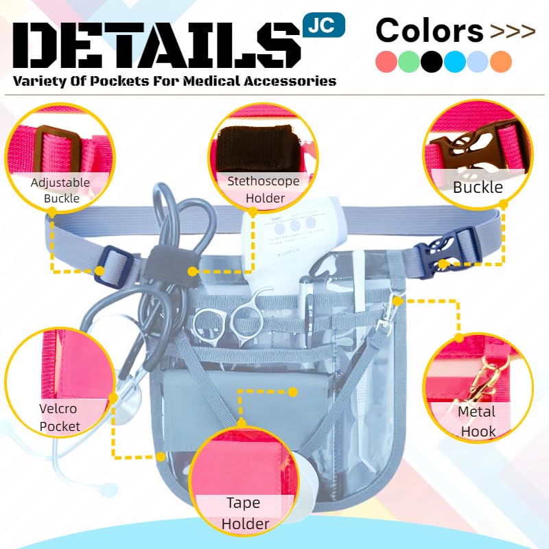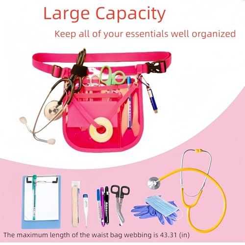 【High-quality material】This durable nursing waist bag for nurses is made of high-quality polyester, with an adjustable and detachable waistband and multi-compartment design. If you are a nurse/doctor/technician, it will improve your work efficiency and convenience.【Multi-pocket design】This multi-functional nurse waist bag has multiple independent pockets, which are carefully designed to store a variety of medical necessities: flushing syringes, stethoscopes, bandages, cotton swabs markers, you can put them all in the bag to keep them beautiful and organized.【Adjustable belt】The buckle-adjustable waistband can be better fixed to prevent slipping. The magic sticker design can fix the stethoscope, the quick access pocket can conveniently store the equipment and find it easily, and the transparent design provides visibility, helping nurses and other healthcare professionals save time and improve work efficiency.【Best gift】The nurse waist bag is perfect for nursing assistants (CNA), nurse practitioners (NP), physician assistants (PA), emergency medical technicians (EMT), medical doctors (MD), internal medicine doctors, veterinarians, managers, pharmacists, dentists, medical assistants, etc. This is a wonderful gift for yourself or friends on Christmas, Nurses' Day or any occasion.【Practicality】For busy medical staff, this medical care bag can store the tools you need. Designed based on the needs of doctors and nurses and approved by doctors and nurses, this care bag eliminates the need to stuff all the necessities into pockets or on a cart, saving you time from multiple trips to the medical room and storage room during your shift. This is a must-have tool bag for all medical staff.