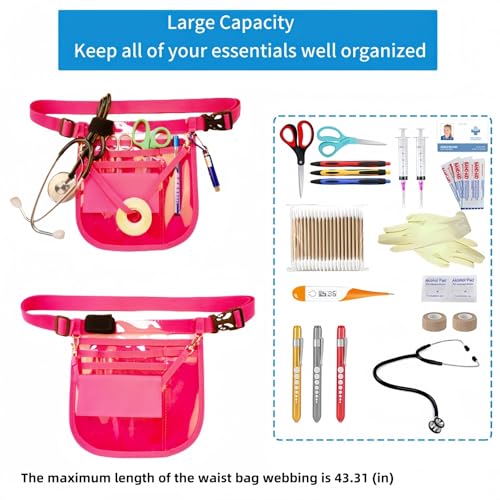 【High-quality material】This durable nursing waist bag for nurses is made of high-quality polyester, with an adjustable and detachable waistband and multi-compartment design. If you are a nurse/doctor/technician, it will improve your work efficiency and convenience.【Multi-pocket design】This multi-functional nurse waist bag has multiple independent pockets, which are carefully designed to store a variety of medical necessities: flushing syringes, stethoscopes, bandages, cotton swabs markers, you can put them all in the bag to keep them beautiful and organized.【Adjustable belt】The buckle-adjustable waistband can be better fixed to prevent slipping. The magic sticker design can fix the stethoscope, the quick access pocket can conveniently store the equipment and find it easily, and the transparent design provides visibility, helping nurses and other healthcare professionals save time and improve work efficiency.【Best gift】The nurse waist bag is perfect for nursing assistants (CNA), nurse practitioners (NP), physician assistants (PA), emergency medical technicians (EMT), medical doctors (MD), internal medicine doctors, veterinarians, managers, pharmacists, dentists, medical assistants, etc. This is a wonderful gift for yourself or friends on Christmas, Nurses' Day or any occasion.【Practicality】For busy medical staff, this medical care bag can store the tools you need. Designed based on the needs of doctors and nurses and approved by doctors and nurses, this care bag eliminates the need to stuff all the necessities into pockets or on a cart, saving you time from multiple trips to the medical room and storage room during your shift. This is a must-have tool bag for all medical staff.